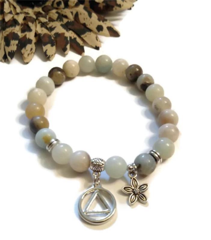 3. Natural Amazonite Stretch Bracelet – Alcoholics Anonymous Jewelry